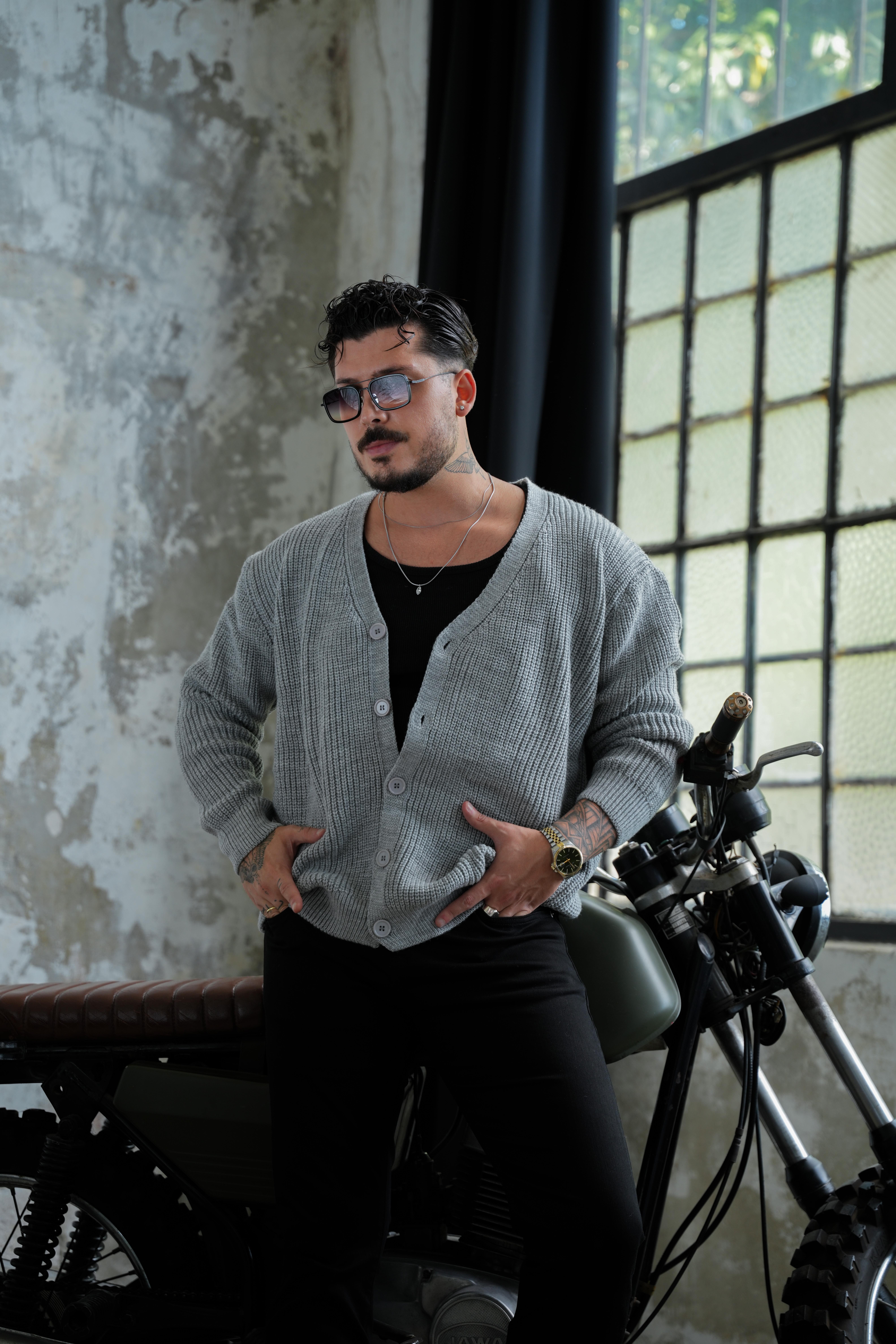 Örgülü  Bol Kalıp Hırka Gri