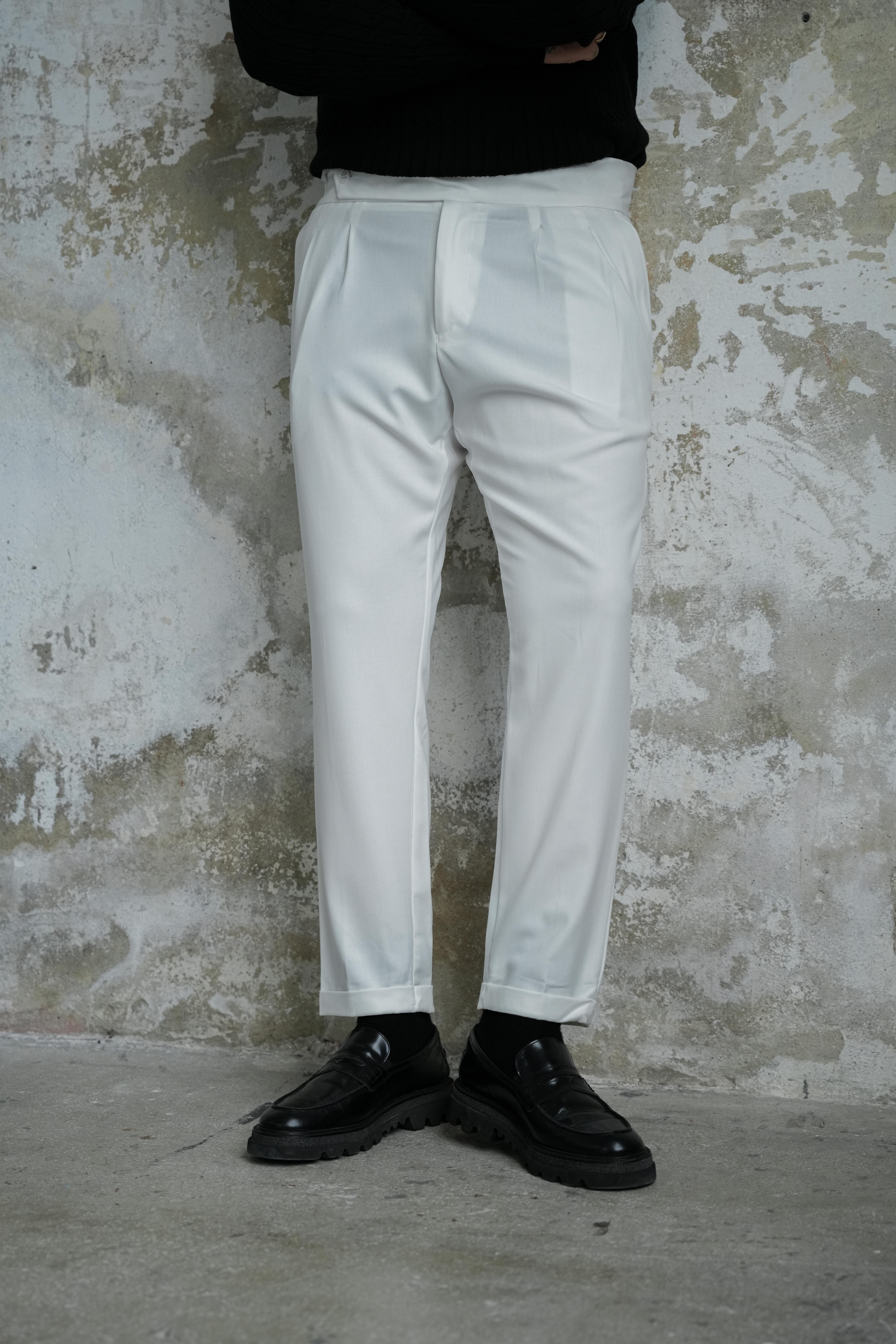 İtalyan Tek Düğmeli Pantolon Beyaz