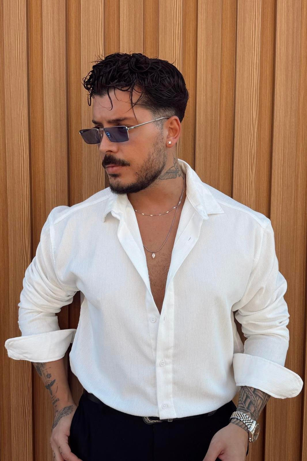 Kadife Regular Fit Gömlek Beyaz