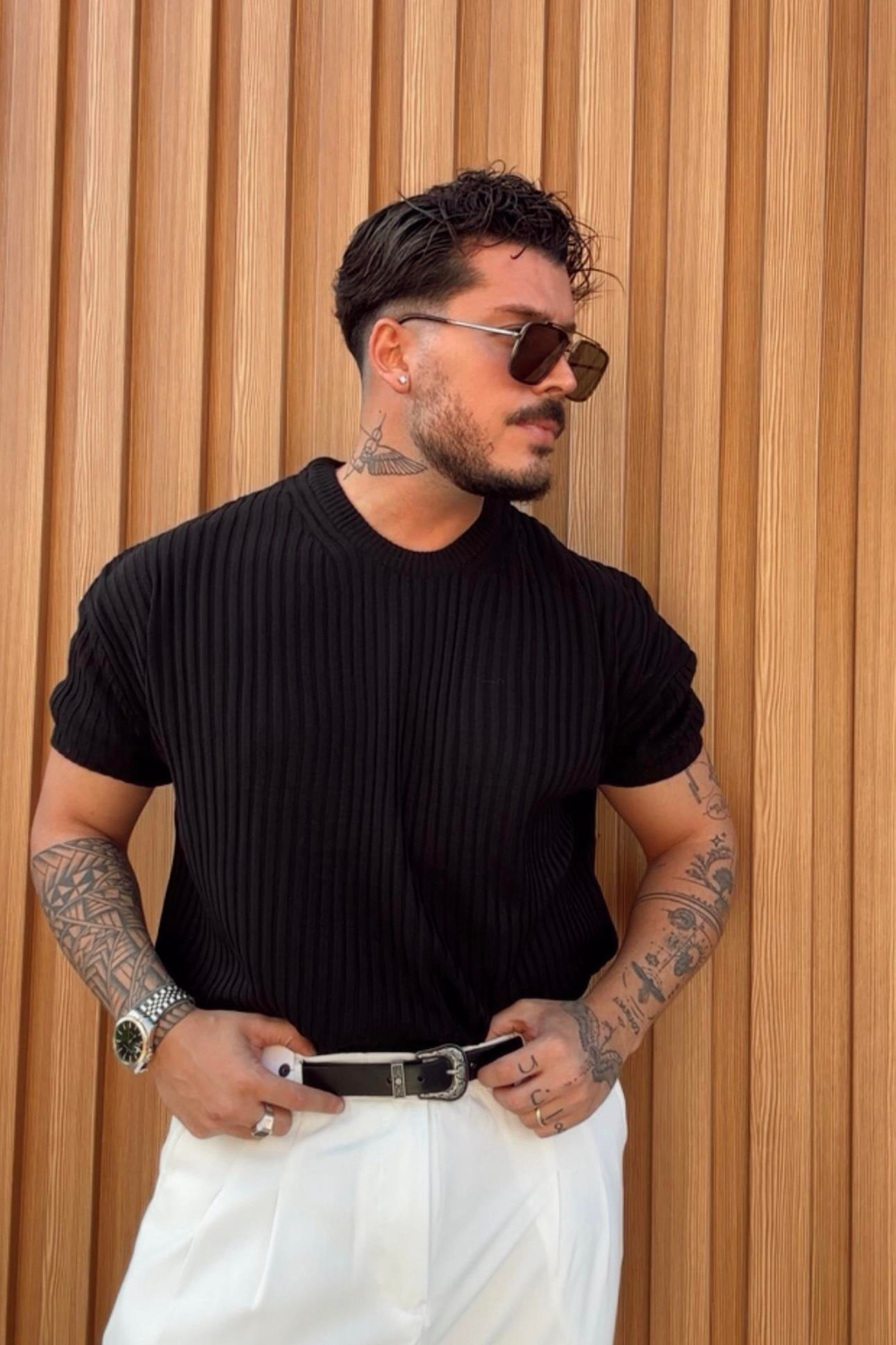 Kısa Kol Loose Fit Bol Kalıp Tshırt Siyah (30500)