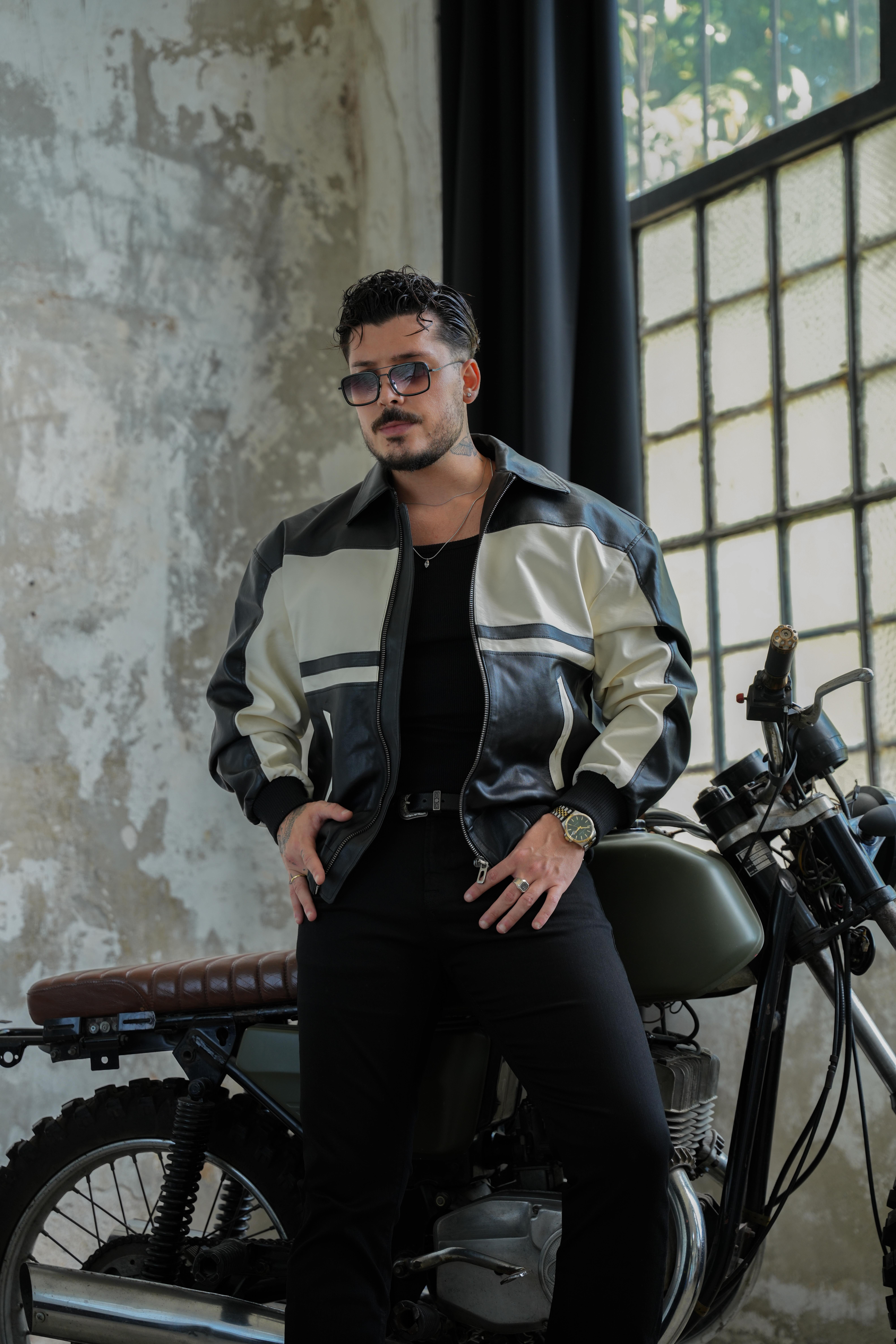 En İyi Kombinlerinizin bitirici parçası Ceket Modelleri sizler için en trend modelleri ile Outfit-Man Online Kataloğunda sizleri bekliyor. Birbirinden tarz ceket modelleri kombinlerinizdeki havayı değiştirecek.Kontrast Renk Bloklu Bomber Deri Ceket modelini siz de çok seveceksiniz.