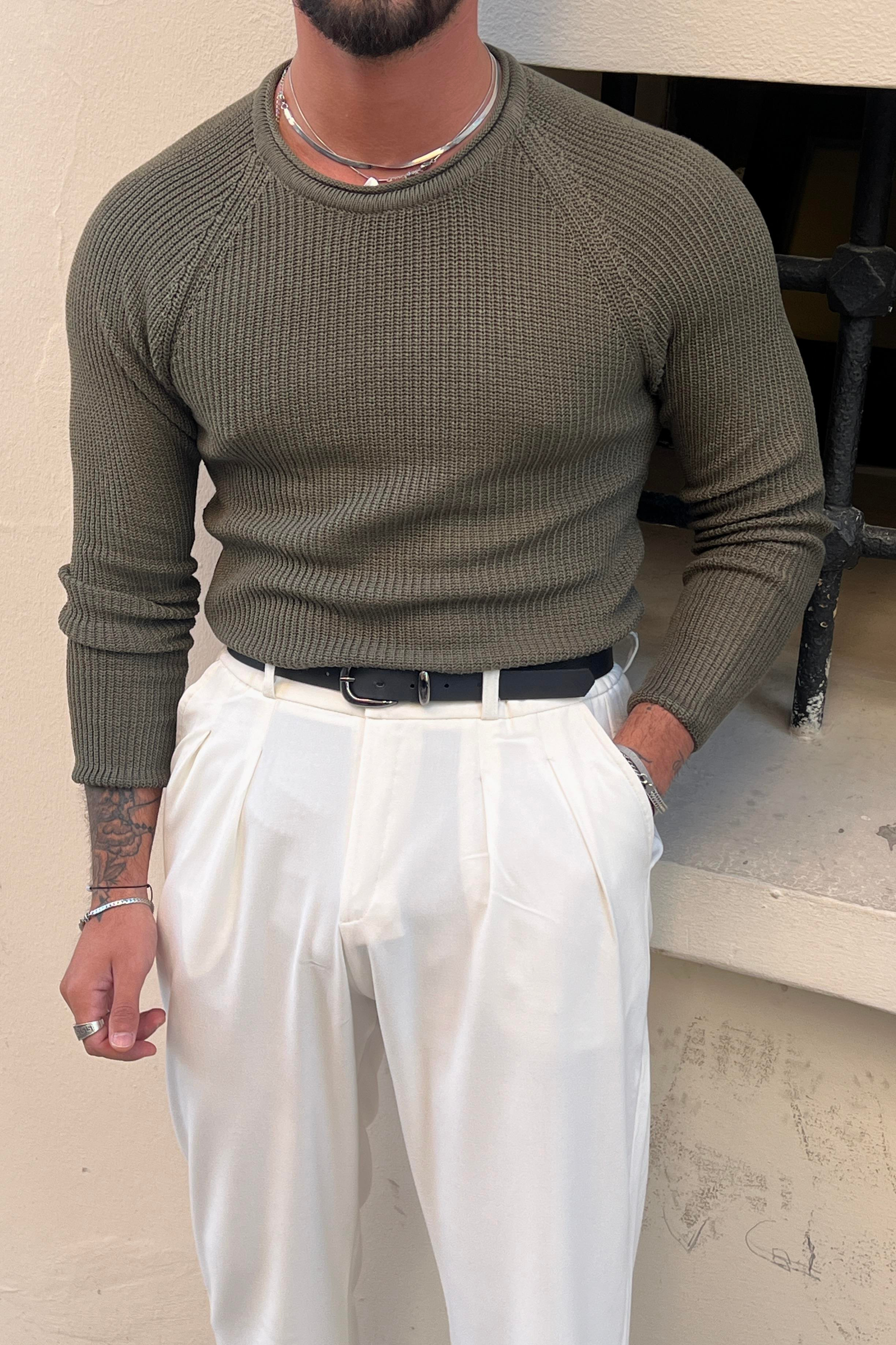 Yaka Detay Slim Örgülü Kazak Haki (90209)